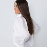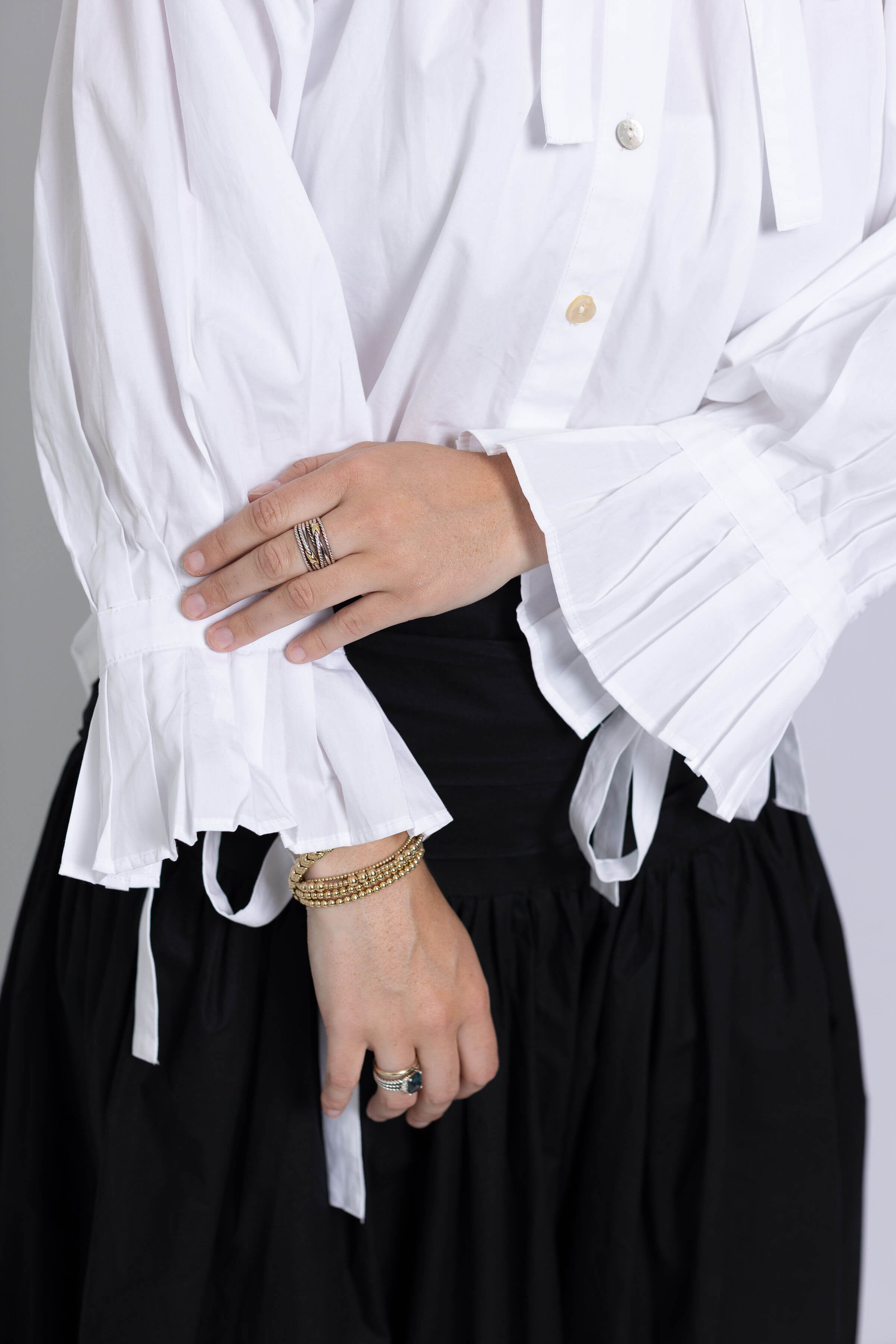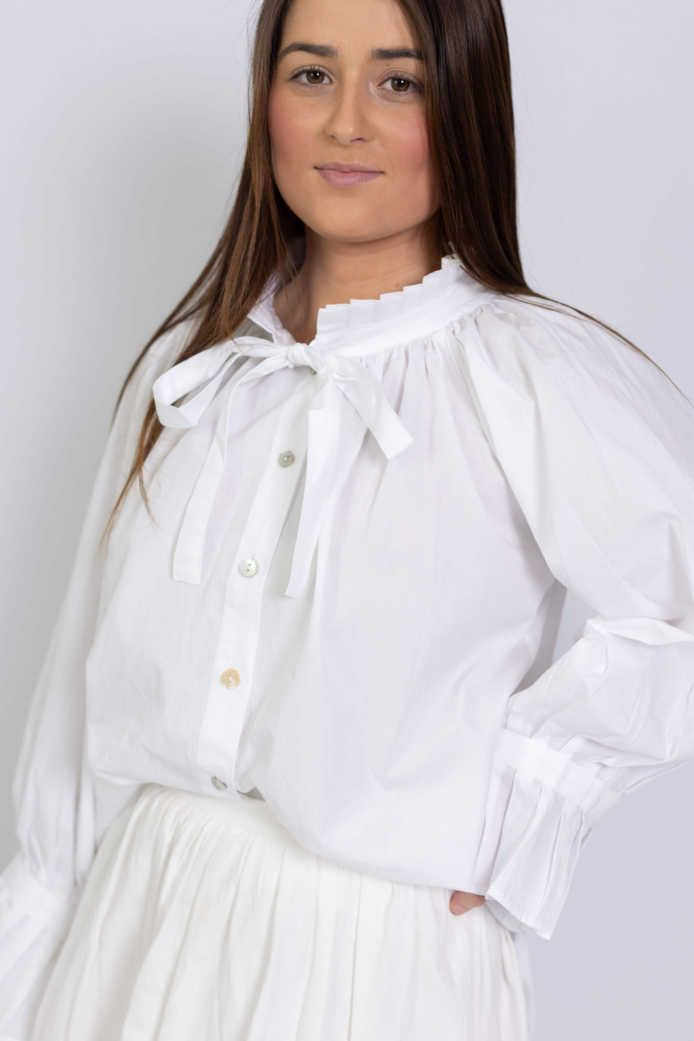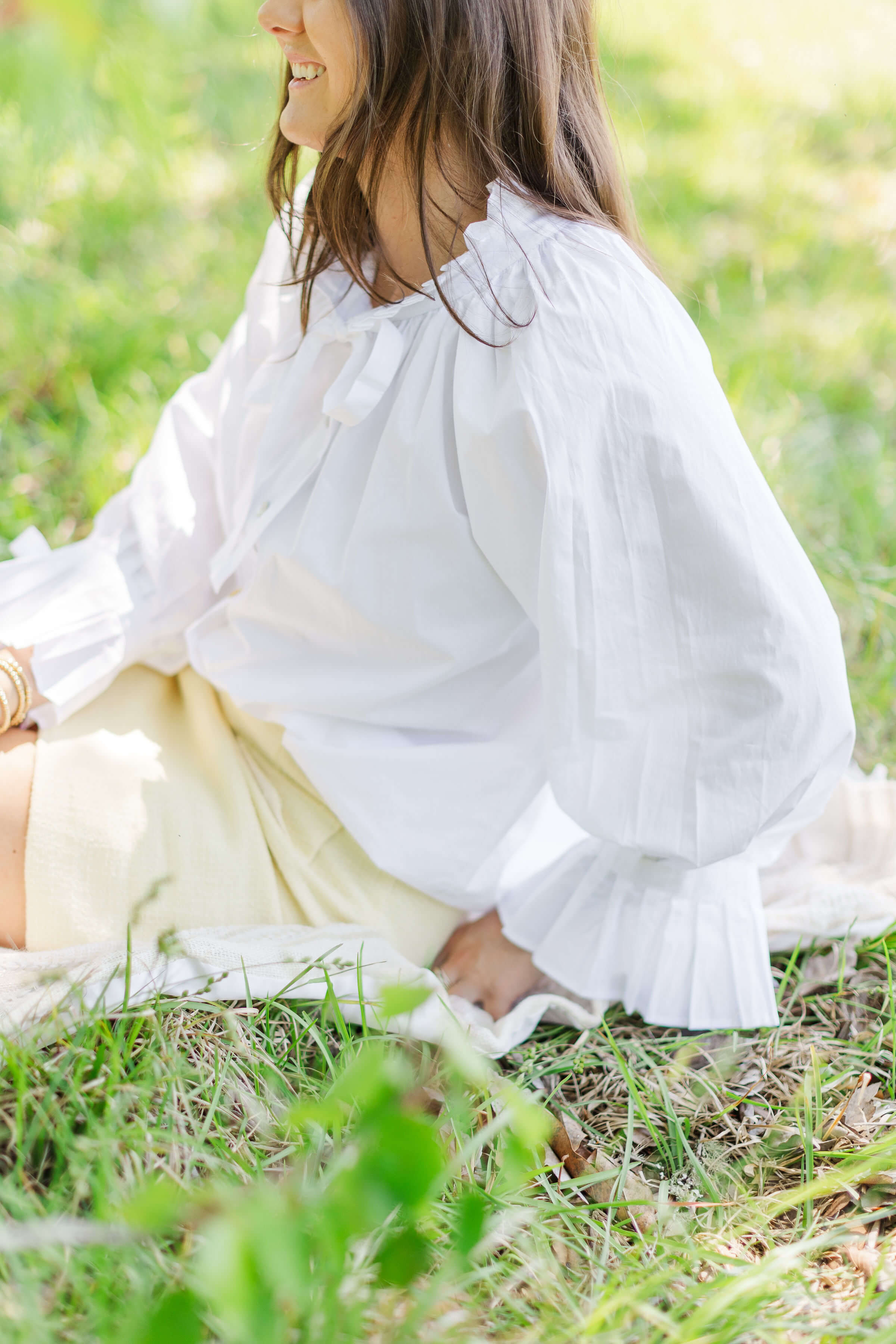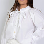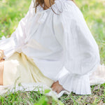 Airy and romantic long sleeve blouse with tie details throughout. Made of 100% recycled cotton, this item is lightweight and soft. Designed by LJC Designs.